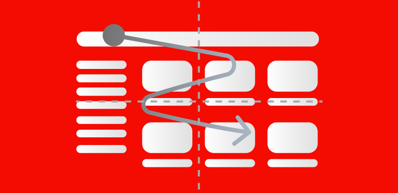 Диагональ Гуттенберга — универсальный паттерн, но имеет вариации. Например, при многоколончатой верстке глаза пользователя двигаются по следующей схеме: