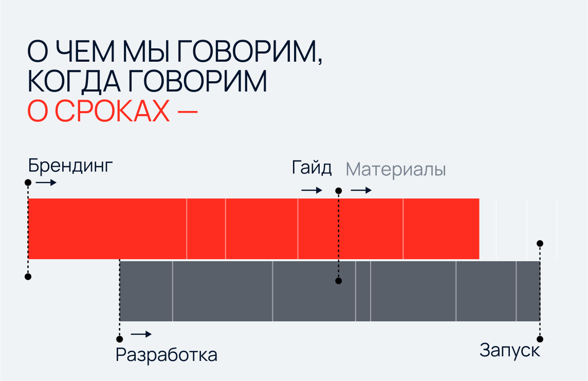 При этом действия специалистов разных направлений будут согласованными. Такой подход позволяет нам синхронизировать процессы и сократить количество возможных доработок.