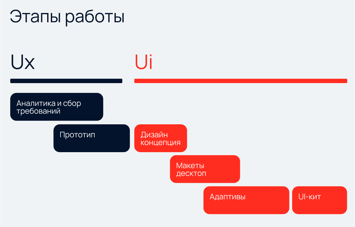 - Дизайн-концепция Собираем стиль — задаем правила использования цветовой палитры, шрифтов, элементов управления и общего стиля продукта. Оформляем демо страниц. Утверждаем.