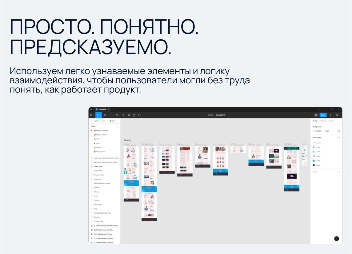 - Архитектура и прототип Создаем черно-белый каркас будущего интерфейса в Figma. Выстраиваем логику взаимодействия. Тестируем и собираем обратную связь.